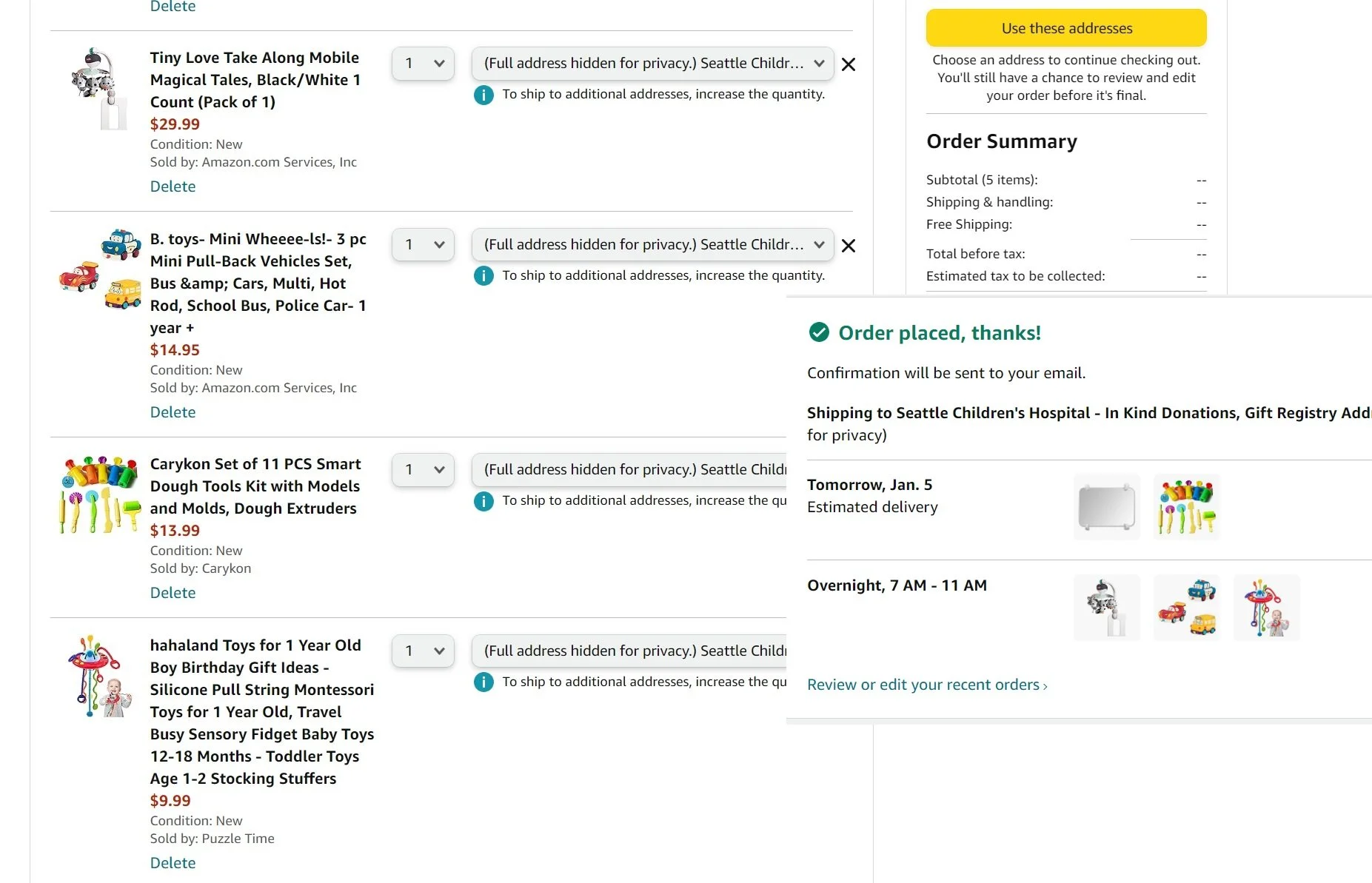 I was unable to expediently achieve this proposed task. Instead of dropping off items I ordered off the wish list for Seattle Children's, this was the easiest way to do something. - Thanks for the great idea Rocky! X helped make the world a better place today.